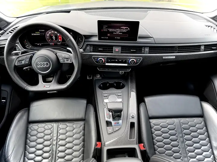 Espectacular y exclusiva unidad de AUDI RS4 AVANT en estado de REESTRENO con absolutamente todo el equipamiento disposible. - Asientos super deportivos eléctricos con memoria y masaje - Asientos calefactables - Head Up Display - Paquete RS Dynamic Plus - Frenos Carbocerámicos - Faros LED MATRIX - Paquete cuero natural VALCONA negro - Sistema de escape deportivo RS - Cámara trasera - Volante deportivo - Paquete de asistente de aparcamiento con aparcamiento asistido Plus - Retrovisores eléctricos, térmicos, antideslumbrantes con memoria - Techo Panorámico - Paquete óptica exterior en Carbono - Molduras interiores en Carbono - Dirección dinámica - Diferencial trasero deportivo - Audi Pre Sense - Paquete de asistentes CITY - Paquete de asistentes TOUR - Control de velocidad adaptativo - Asistentes de salida y cambio de carril - Reconocimiento de señales - Climatizador 3 zonas - Audi Smartphone interface - Pinzas de freno pintadas en Rojo - Sistema de sonido Bang & Oluffsen - Llave Audi Connect - Iluminación ambiente de contorno - Cristales oscurecidos